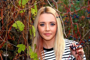 Keywords: girl portrait blue eyes blond leaf beauty smile