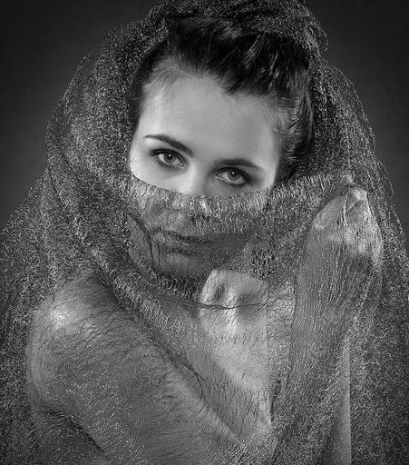 Keywords: girl portrait face shadowed tulle whether beauty woman mystery the veil look