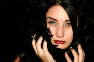 Keywords: girl portrait green eyes beauty feather snowflakes black