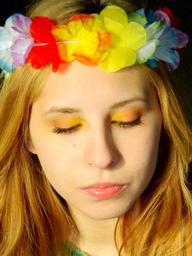 Keywords: girl portrait princess blond hair eye brown wreath story nice