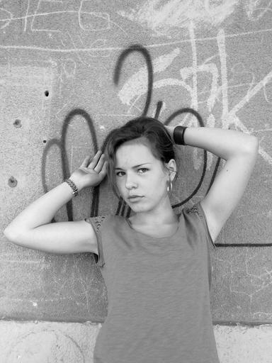 Keywords: girl pose model young woman hauswand black and white