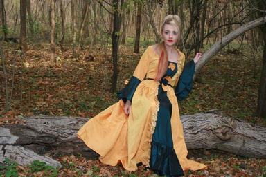 Keywords: girl princess dress autumn leaves yellow forest beauty