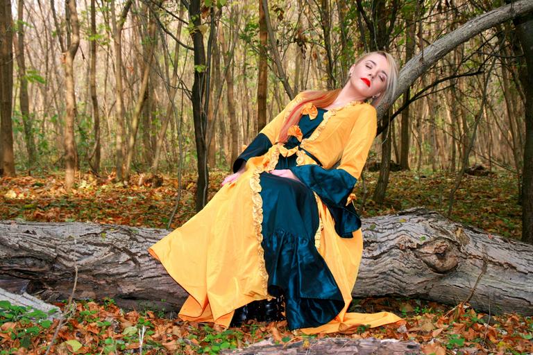 Keywords: girl princess dress autumn leaves yellow forest beauty