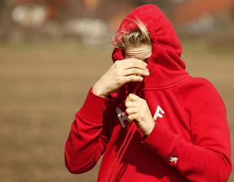 Keywords: girl red young beautiful sample sweatshirt white woman background beauty hair fashion cute portrait women nice warm color style blonde hide face