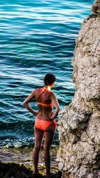 Keywords: girl rock sea young nature summer adventure active youth leisure cyprus vacation holiday tourism bikini