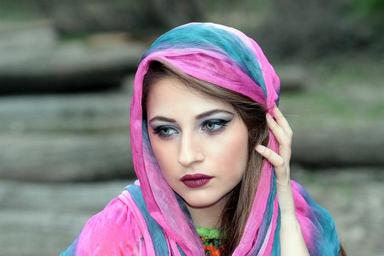 Keywords: girl scarf cover oriental blue eyes coloring beauty