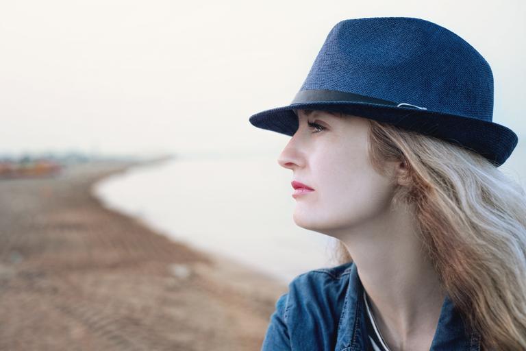 Keywords: girl sea hat sky summer view blonde blue vacation beach woman outdoors
