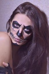 Keywords: girl skull girl with gloves brunette drawing on the face makeup