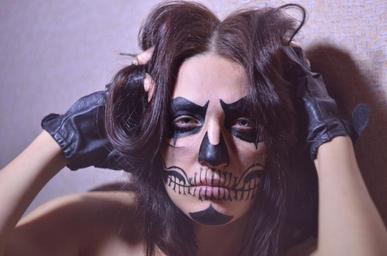 Keywords: girl skull girl with gloves brunette drawing on the face makeup