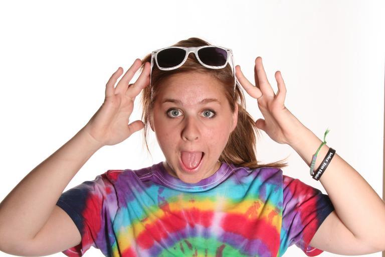 Keywords: girl smile color shirt sunglasses face young happy female portrait cheerful fun happiness cute attractive healthy joyful teen childhood expression fashion casual funny