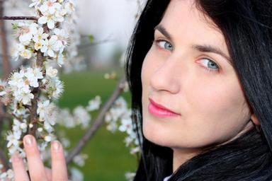 Keywords: girl spring flowers tree white blue eyes