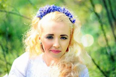 Keywords: girl spring flowers white blue eyes blonde wreath beauty trees