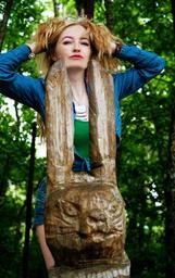 Keywords: girl statuette hare beast hairstyle model pose forest vacation fashionable girl hands long hair makeup portrait photoshoot beauty hair person posture view