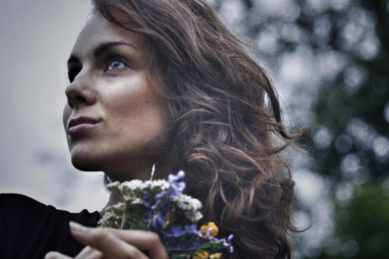 Keywords: girl summer bouquet greens portrait hair model beauty stroll youth outdoors hands hairstyle living nature people woman view posture person riddle female aesthetics photo views eyes flowers flowers of the field closeup