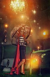Keywords: girl summer umbrella bed night cloak dog butterfly