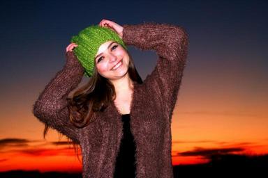 Keywords: girl sunset in the evening green eyes hat sky green cold portrait beauty