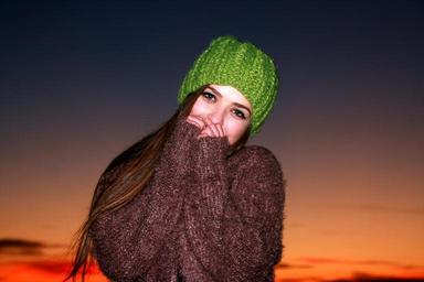 Keywords: girl sunset in the evening green eyes hat sky green cold portrait beauty