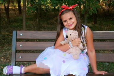 Keywords: girl tedddy bear teddy bear bank bow smile child beauty red bow innocence princess dress white