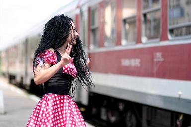 Keywords: girl train departure goodbye red