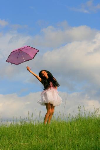 Keywords: girl umbrella princess flight pink grass sky long hair