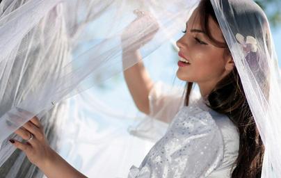 Keywords: girl veil white beauty long hair smile