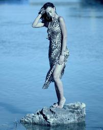 Keywords: girl wild water rock dress leopard beauty brown brunet summer