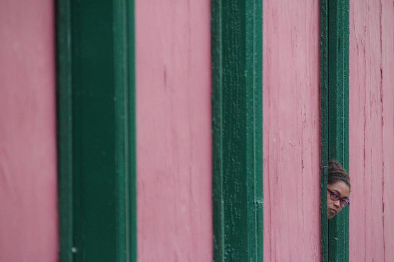 Keywords: girl window facade pink-green rausschauen human face pretty