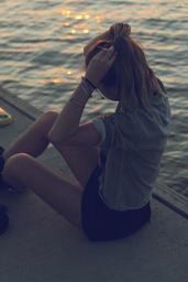 Keywords: girl woman blonde ponytail legs accessories jewellery skinny water sea lake river