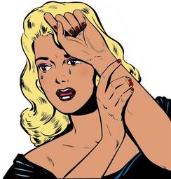 Keywords: girl woman cry female young sexy pop art retro vintage young woman makeup colored png blonde hairdo fashionable pin up