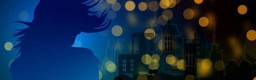Keywords: girl woman hair left out dance elated skyline skyscrapers city silhouette bokeh look viewing direction background pattern texture face pupil iris watch see close