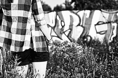 Keywords: girl woman person art kuensterlisch move graffiti factory building wall