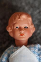 Keywords: girl woman portrait face head features housekeeper maid 60s doll doll's house caco