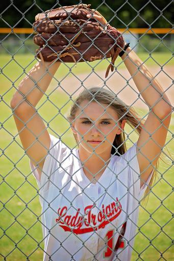 Keywords: girl young glove fence outdoors softball player expression face portrait female