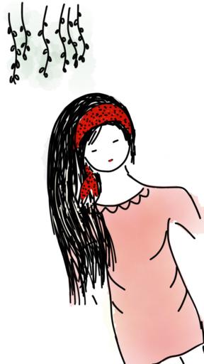 Keywords: girl young woman lady long hair female person young portrait hair fashion pink dress hairstyle style glamour attractive beautiful hair elegance hair band posing willow green red sketch doodle