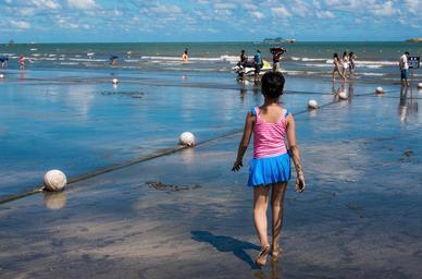 Keywords: girls beach blue sky white cloud sunny days