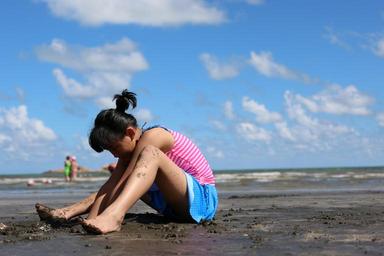 Keywords: girls beach blue sky white cloud sunny days