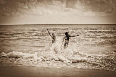 Keywords: girls beach ocean sea waves sand shore splash fun people vacation