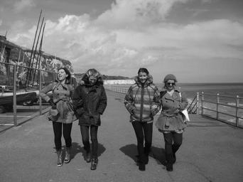Keywords: girls black and white coast uk beach walking white black woman young female person