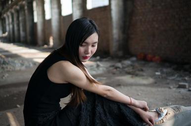 Keywords: girls female women wearing black skirt ruins of women