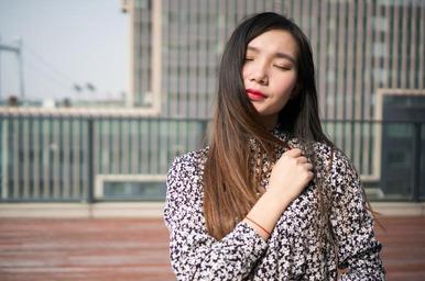 Keywords: girls female woman floral skirt dress asia people model urban background
