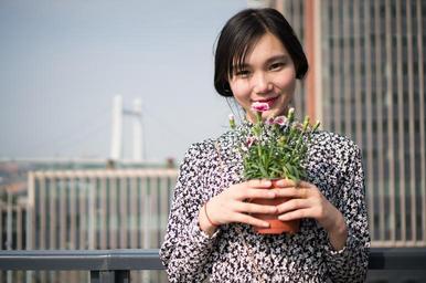 Keywords: girls female woman floral skirt dress asia people model urban background