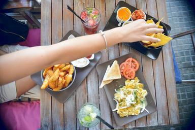 Keywords: food woman breakfast table outside photography restaurant cafe hand drink eating tomatoes social celebration mexican cocktail eat fries brunch gil dip nachos arial menue froup cubalibra stokpic