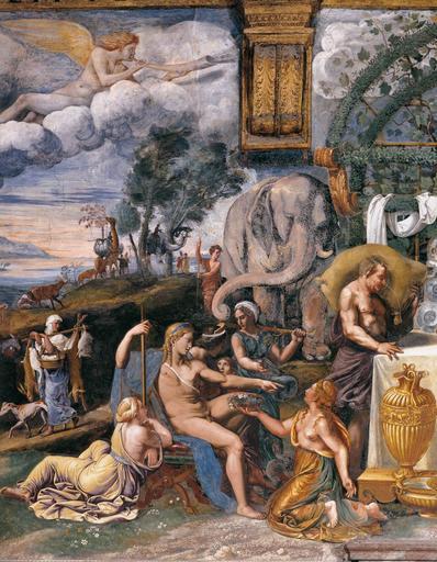 | Keywords: Giulio Romano - Tribute to Apollo - WGA09562.jpg Artwork Creator Giulio Romano between 1526 1528 Fresco Institution Sala di Psyche Palazzo del Tè Mantua object history credit line accession number WGA link 9562 http //www wga hu/art/g/giulio/1pala_te/psyche/1south1 jpg http //www wga hu/html/g/giulio/1pala_te/psyche/1south1 html painting mythological Italian 1501-1550 PD-old-100 Frescos by Giulio Romano Tribute to Apollo Sala di Psiche Palazzo del Tè Mantua 1520s mythological paintings WGA form painting WGA type mythological WGA School Italian WGA time period 1501-1550 Paintings of elephants Mythological figures on clouds Music-making angels Paintings of vases Mythological figures in nature Paintings of people in nature 16th-century landscape paintings 1520s frescos in Italy Details of frescos Mythological paintings in Italy Paintings of Apollo |