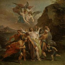 | Keywords: Giuseppe Cades - The Martyrdom of the Blessed Signoretto Alliata - Walters 371831.jpg Signoretto Alliata was a nobleman of Pisa who spent his life on Sicily working in hospitals Late in life he became a hermit and lived in seclusion in a deserted place on the shore According to legend he received his martyrdom near his dwelling at the hands of a band of North African pirates In the painting the pirates can be recognized as Muslims by their turbans To a Christian audience the scene conveyed the death of a blessed man at the hands of infidels His luminous pale body and drapery symbolize his purity Angels hand him the crown of martyrdom This loosely painted scene was a preparatory version for a large painting commissioned for the cathedral of Pisa by Count Tommaso Alliata Campiglia who wanted to honor his holy ancestor Zeri Italian paintings in the Walters Art Gallery 429 540-541 ca 1794 1796 Baroque Oil on canvas Painted surface cm 50 6 50 6 accession number 37 1831 12938 Galleria des Monte di Pietà Rome date and mode of acquisition unknown no 1602 Cassa dei Depositi e Prestiti Rome date and mode of acquistion unknown Cassa dei Depositi e Prestiti Sale Rome November 30 1875 no 65 as Cades Don Marcello Massarenti Collection Rome date and mode of acquistion unknown 1897 catalogue no 431 as a study of a painting in Venice representing St Luke by Tiepolo Henry Walters city Baltimore Walters Art Museum Henry Walters Acquired by Henry Walters with the Massarenti Collection 1902 place of origin Rome Italy Walters Art Museum license 2D Baroque paintings in the Walters Art Museum Giuseppe Cades Media contributed by the Walters Art Museum needs category review |