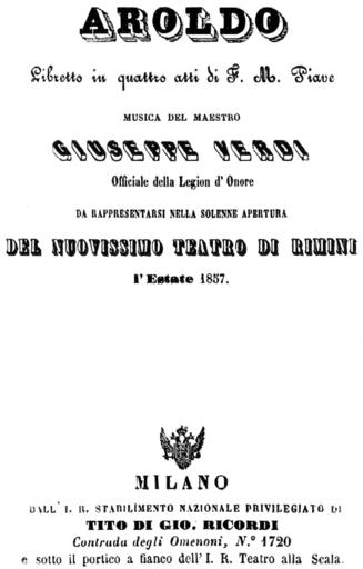 | Keywords: Giuseppe Verdi - Aroldo - titlepage of the libertto - Milan 1857.png en Giuseppe Verdi - Aroldo - titlepage of the libertto - Milan 1857 1857 http //opac braidense it/bid/MUS0000616 Giuseppe Verdi Francesco Maria Piave other versions PD-old-70-1923 Aroldo Libretti of operas by Giuseppe Verdi published by Ricordi 1857 opera libretti |