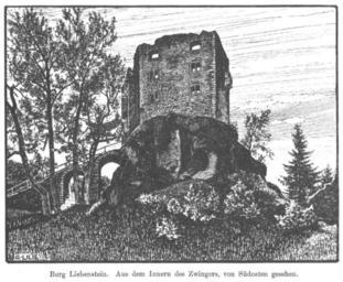 | Keywords: GL06 Liebenstein Ruine.jpg en The ruins of Liebenstein castle in Bad Liebenstein de Die Ruine der Burg Liebenstein in Bad Liebenstein Voss Georg Hrsg Herzogthum Sachsen-Meiningen Kreis Meiningen Amtsgerichtsbezirk Salzungen In Lehfeldt Paul/Voss Georg Hrsg Bau- und Kunst-Denkmäler Thüringens Heft XXXV Jena 1909 S 84 Georg Lilie 1873 -1935 1906 Eingescannte Grafik PD-old Georg Lilie Burg Liebenstein Bad Liebenstein ImageNote 1 131 852 849 47 1092 900 2 Burg Liebenstein Aus dem Innern des Zwingers von Südosten gesehen ImageNoteEnd 1 ImageNote 2 41 800 150 38 1092 900 2 G LILIE 06 ImageNoteEnd 2 |