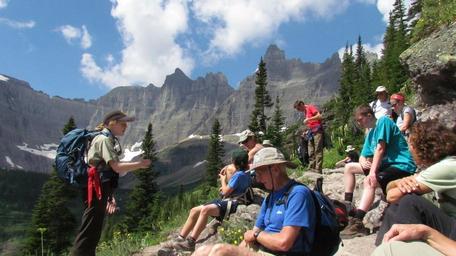 | Keywords: national park service nationalparkservice interns youth programs youthprograms gip geoscientists-in-the-parks geoscientistsintheparks outdoor landscape mountain hill people Karen Alley, GIP intern discussing cirques on a hike at Glacier National Park, Montana. NPS photo by Geoscientists-in-the-Parks Karen Alley, GIP intern discussing cirques on a hike at Glacier National Park, Montana. NPS photo by Geoscientists-in-the-Parks | ||||