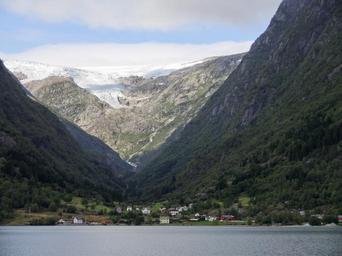Keywords: glacier fjord norway ice mountains settlement village