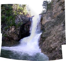 | Keywords: Glacier Running Eagle Falls pan.jpg Glacier National Park A panoramic view of Running Eagle Falls in the Two Medicine valley The falls' two streams of water one behind the other are visible in the center 2005-08-25 own assumed Smack Waterfalls in Glacier National Park Waterfalls in Montana |