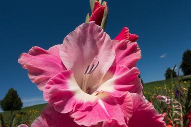 Keywords: gladiolus sword flower schwertliliengewaechs pink tender green blue bloom nature flora summer field